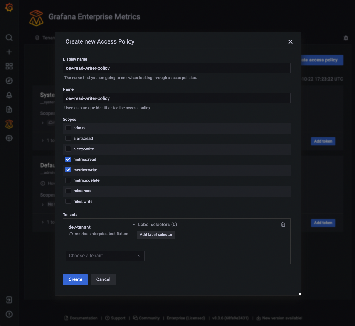Create a Grafana Enterprise Metrics tenant: