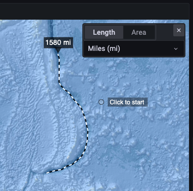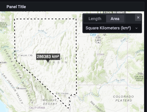 <br /- When you change measurement type or units, the previous measurement is removed from the map. <br /- If the control is closed and then re-opened, the most recent measurement is displayed. <br /- A measurement can be modified by clicking and dragging on it.