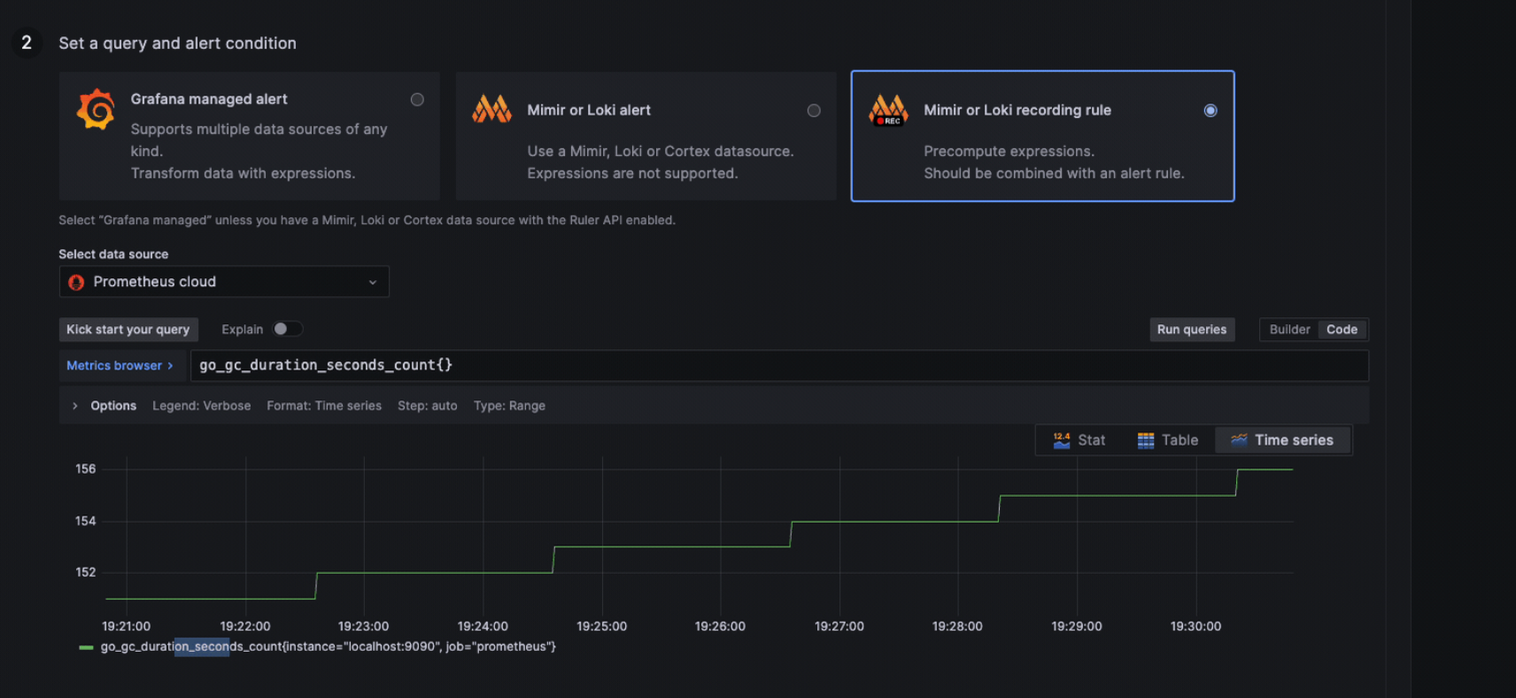 Visualize queries when creating or editing recording rules, so you can see the results of your query before saving your recording rule.
