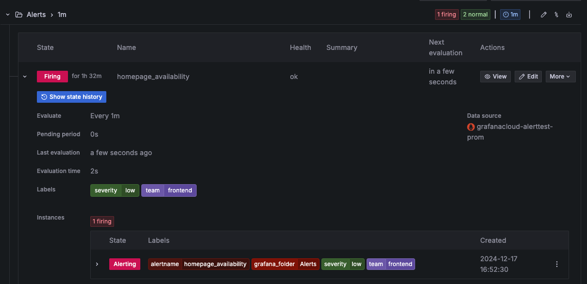 To view the state and health of your alert rules and the status of alert instances:
