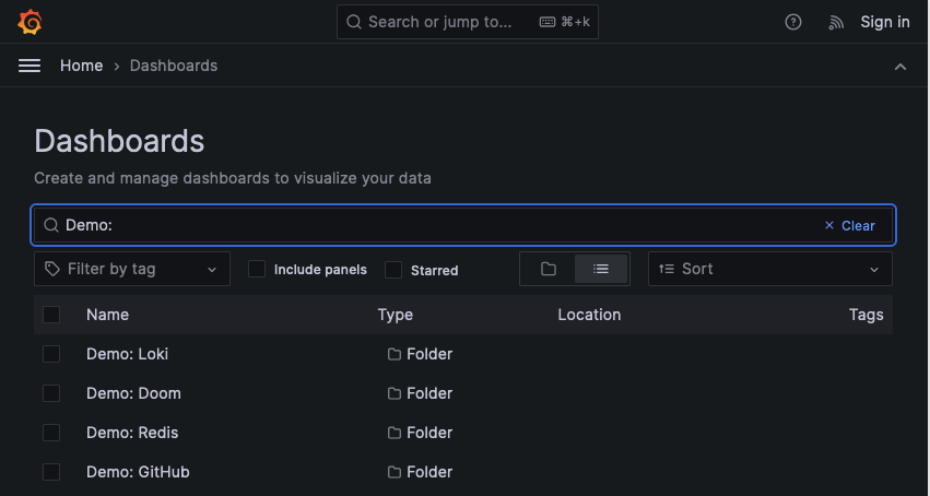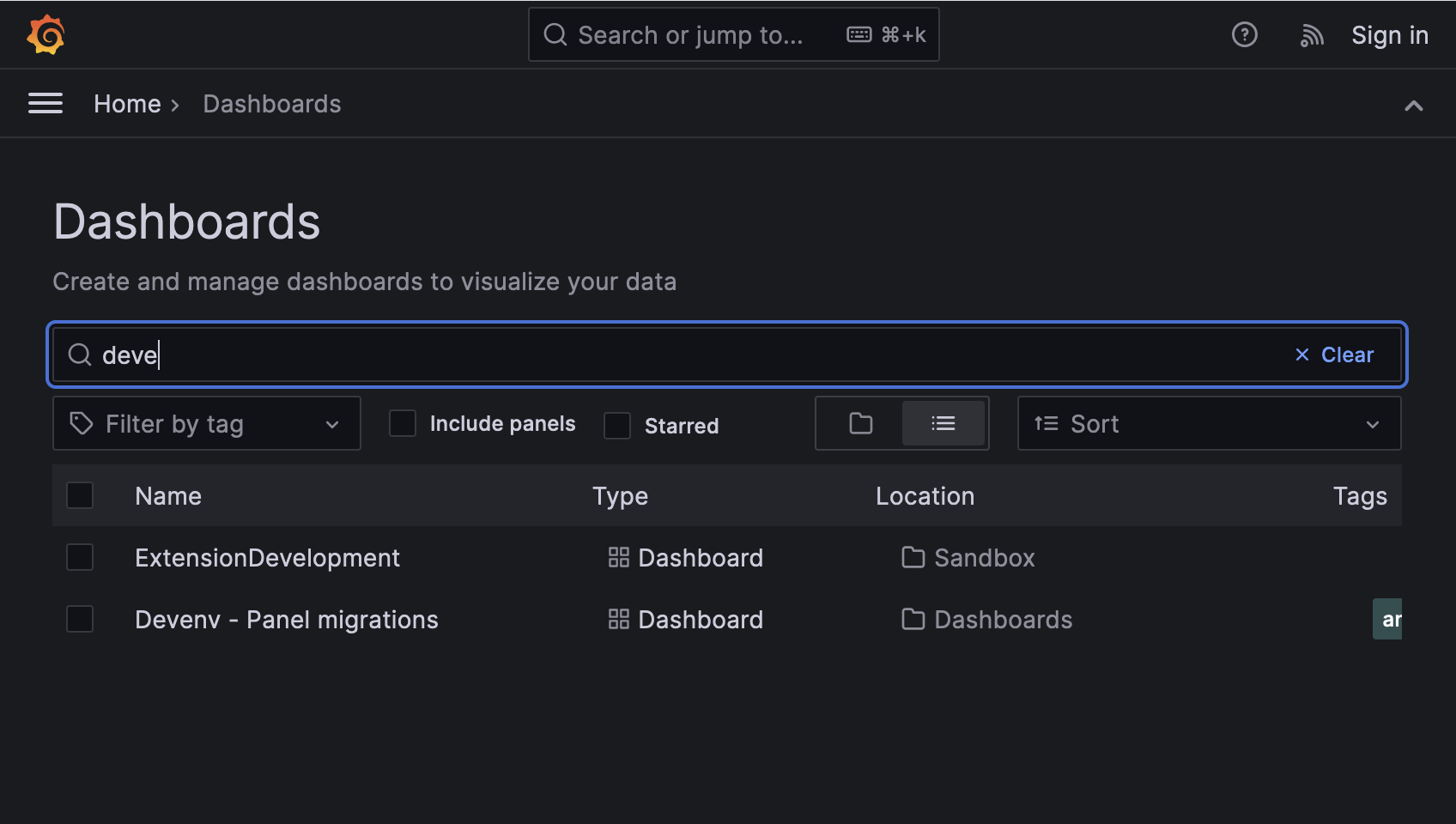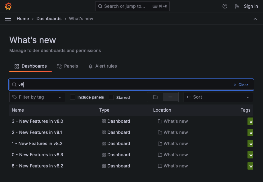 Search dashboards and folders