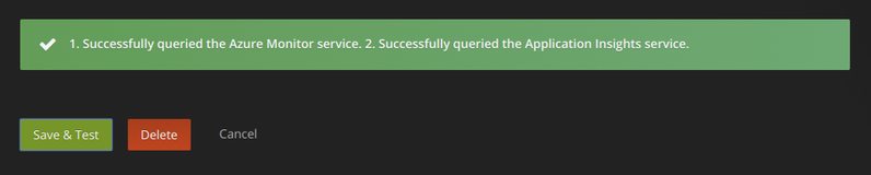 Application Insights Configuration Details Test that the configuration details are correct by clicking on the “Save & Test” button: