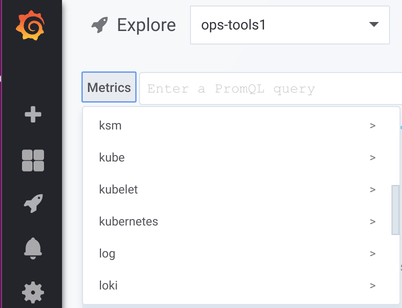 On the left-hand side of the query field is a Metrics button, clicking on this opens the Metric Explorer. This shows a hierarchical menu with metrics grouped by their prefix. For example, all the Alert Manager metrics will be grouped under the alertmanager prefix. This is a good starting point if you just want to explore which metrics are available.
