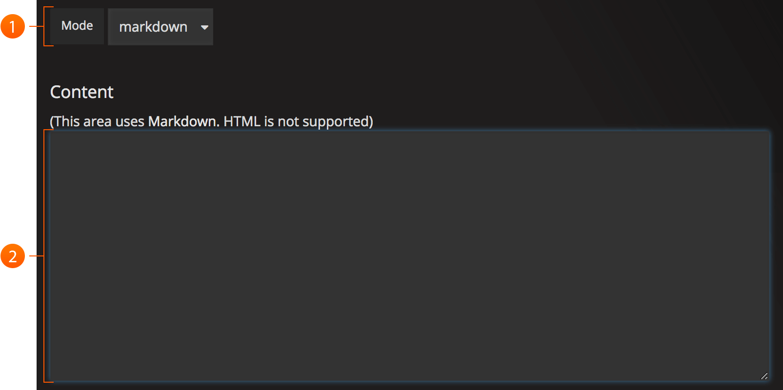 The text panel lets you make information and description panels etc. for your dashboards. There are three modes you can write in: markdown, HTML or text.