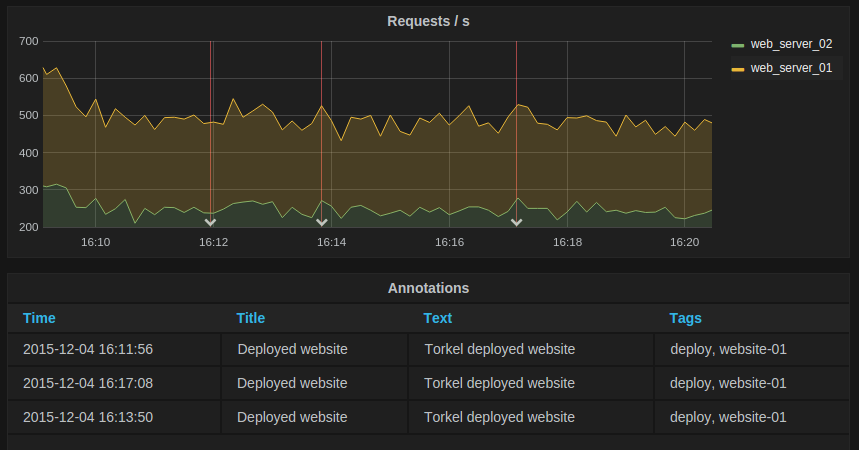 The table can also show any annotations you have enabled in the dashboard.