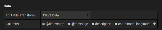 Above you see the options tab for the Table Panel. The most important option is the To Table Transform.