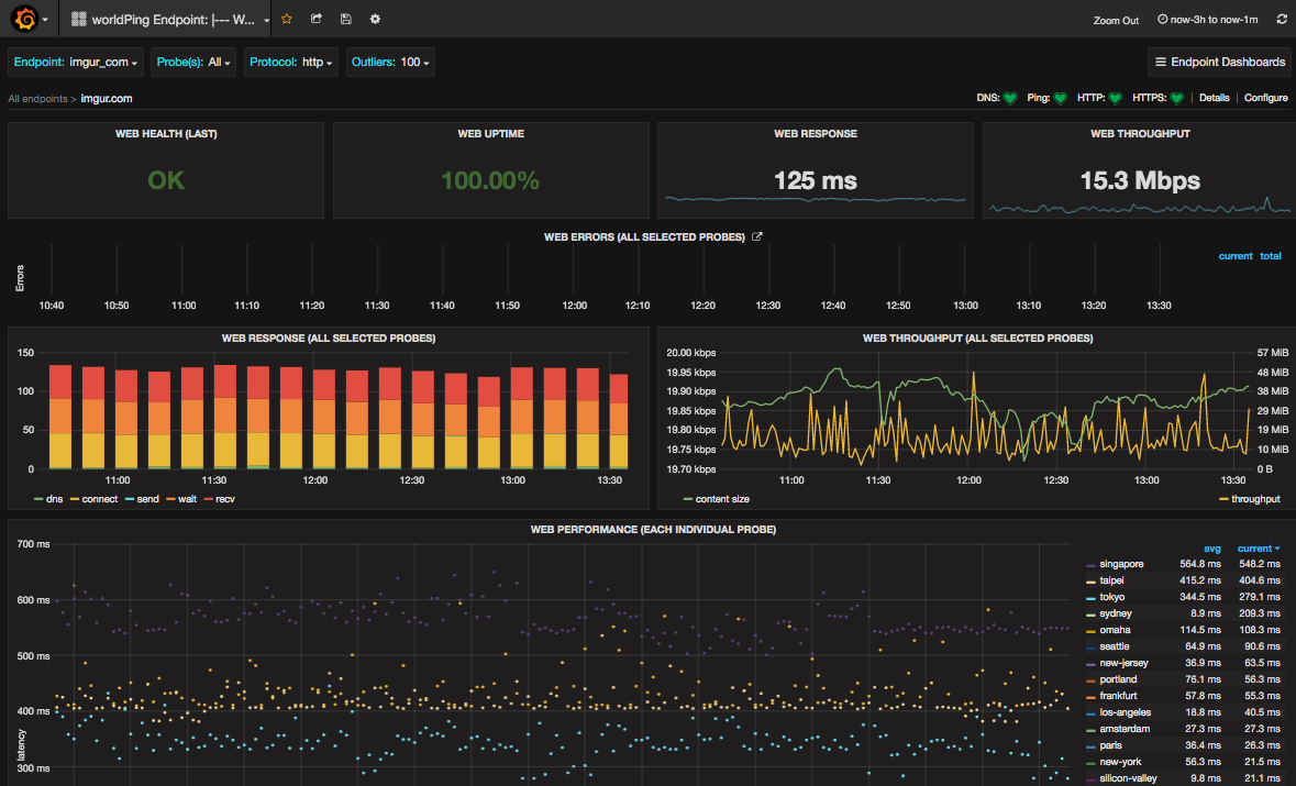 This is full blown Grafana App that adds new panels, data sources and pages to give feature rich global performance monitoring directly from your on-prem Grafana.
