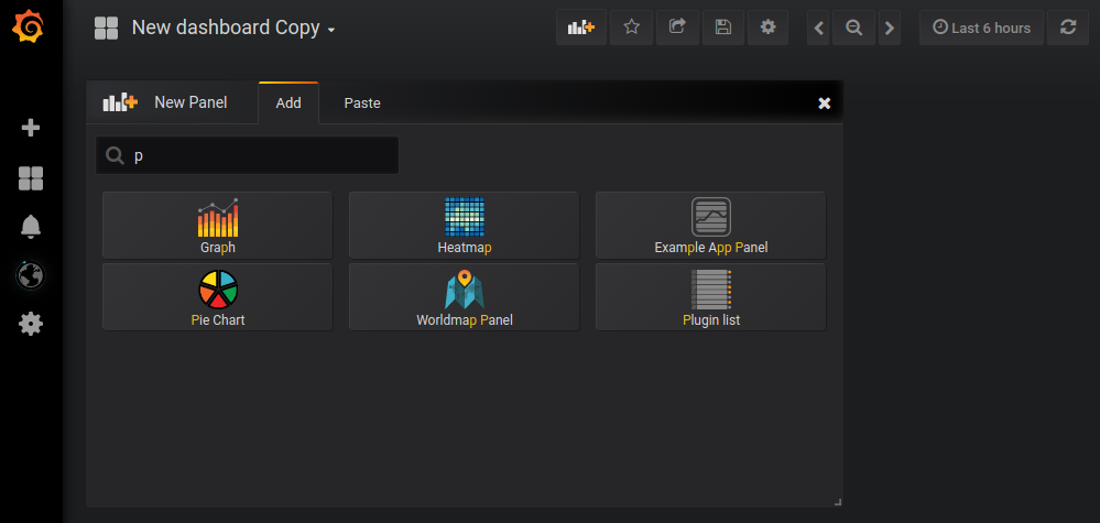 The control for adding new panels to dashboards have got some enhancements and now includes functionality to search for the type of panel you want to add. Further, the control has tabs separating functionality for adding new panels and pasting copied panels.