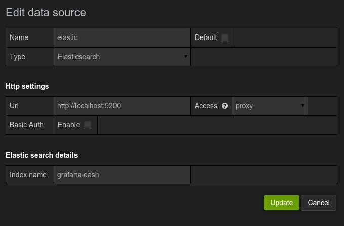 sure your Elasticsearch data source is added. Specify the Elasticsearch