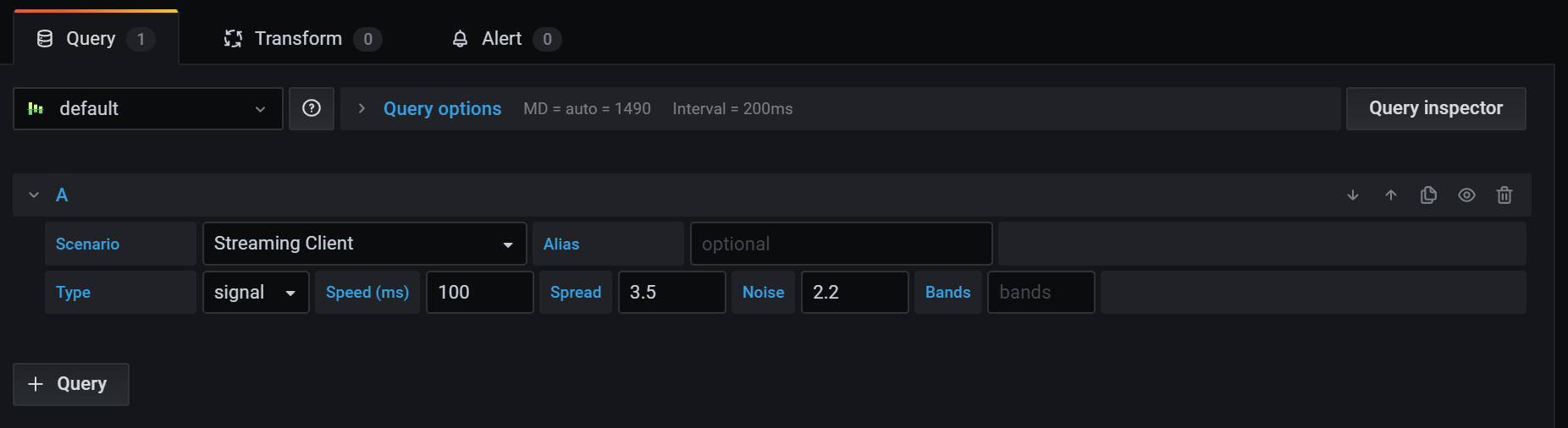 The section contains tabs where you enter queries, transform your data, and create alert rules (if applicable).