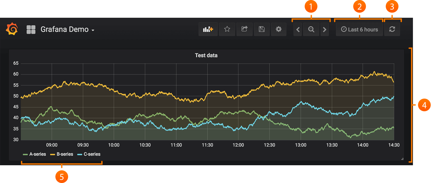 - Graph legend (5) Change series colors, y-axis and series visibility directly from the legend.