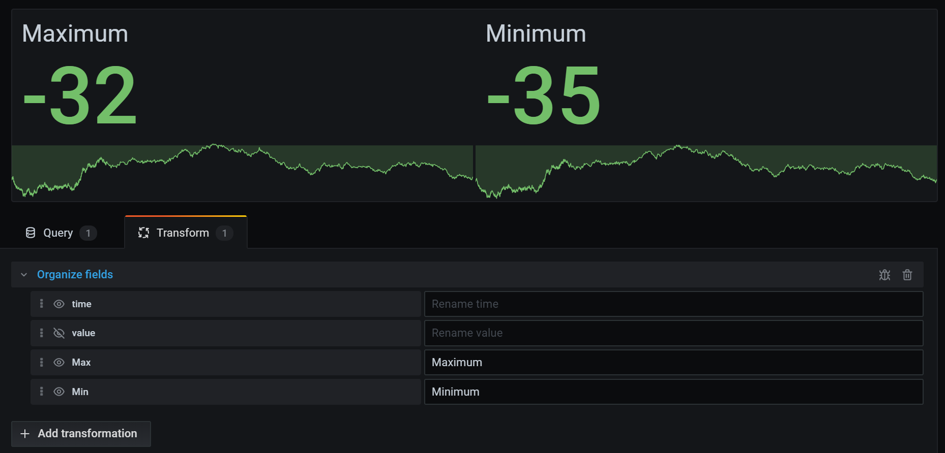 Use this transformation to rename, reorder, or hide fields returned by the query.