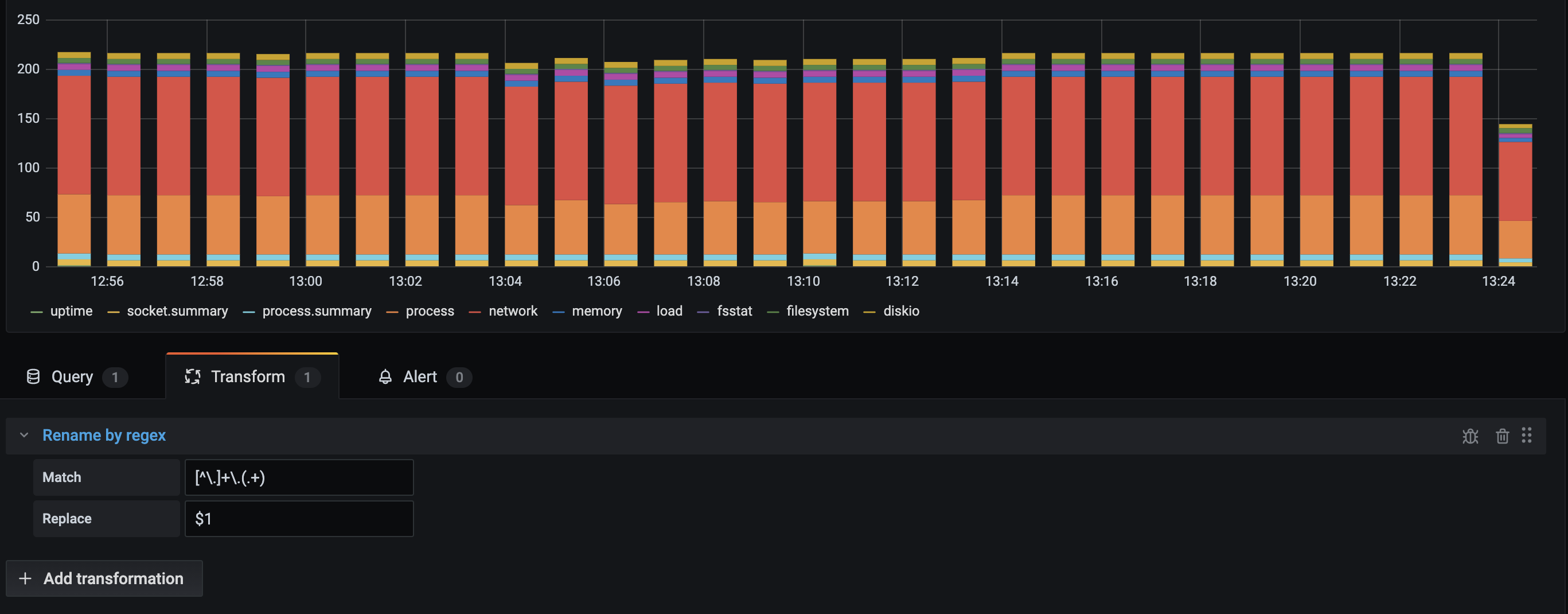 Note: This transformation only works in panels with a single query. If your panel has multiple queries, then you must either apply an Outer join transformation or remove the extra queries.