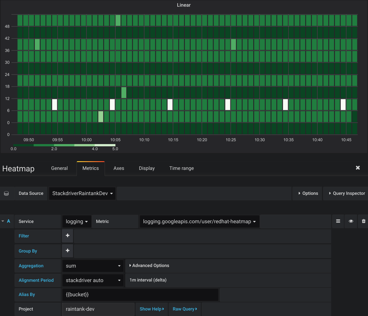 Alias By allows you to format the legend the way you want, and it’s a feature that is not yet present in the Metrics Explorer. Two other features that are only supported in the Grafana plugin are the abilities to manually set the Alignment Period in the query editor and to add Annotations queries.