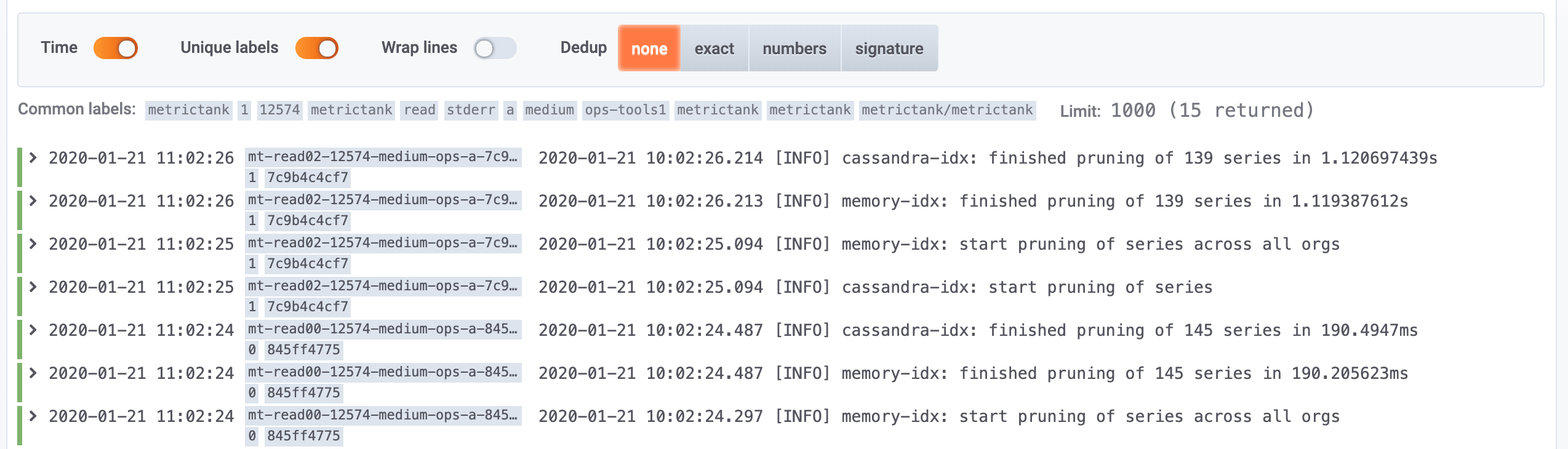 We introduced the wrap-lines option for logs because as for some of our users feel it’s more efficient to see one line per log message. The wrapped-line option is set as a default; the unwrapped setting results in horizontal scrolling.