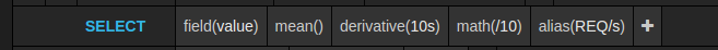 SELECT derivative(mean("value"), 10s) /10 AS "REQ/s" FROM ....Select multiple fields