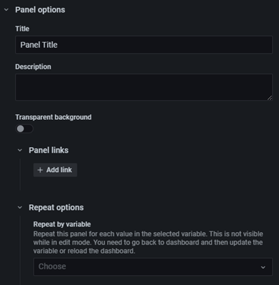 Note: Repeating panels require variables to have one or more items selected; you cannot repeat a panel zero times to hide it.
