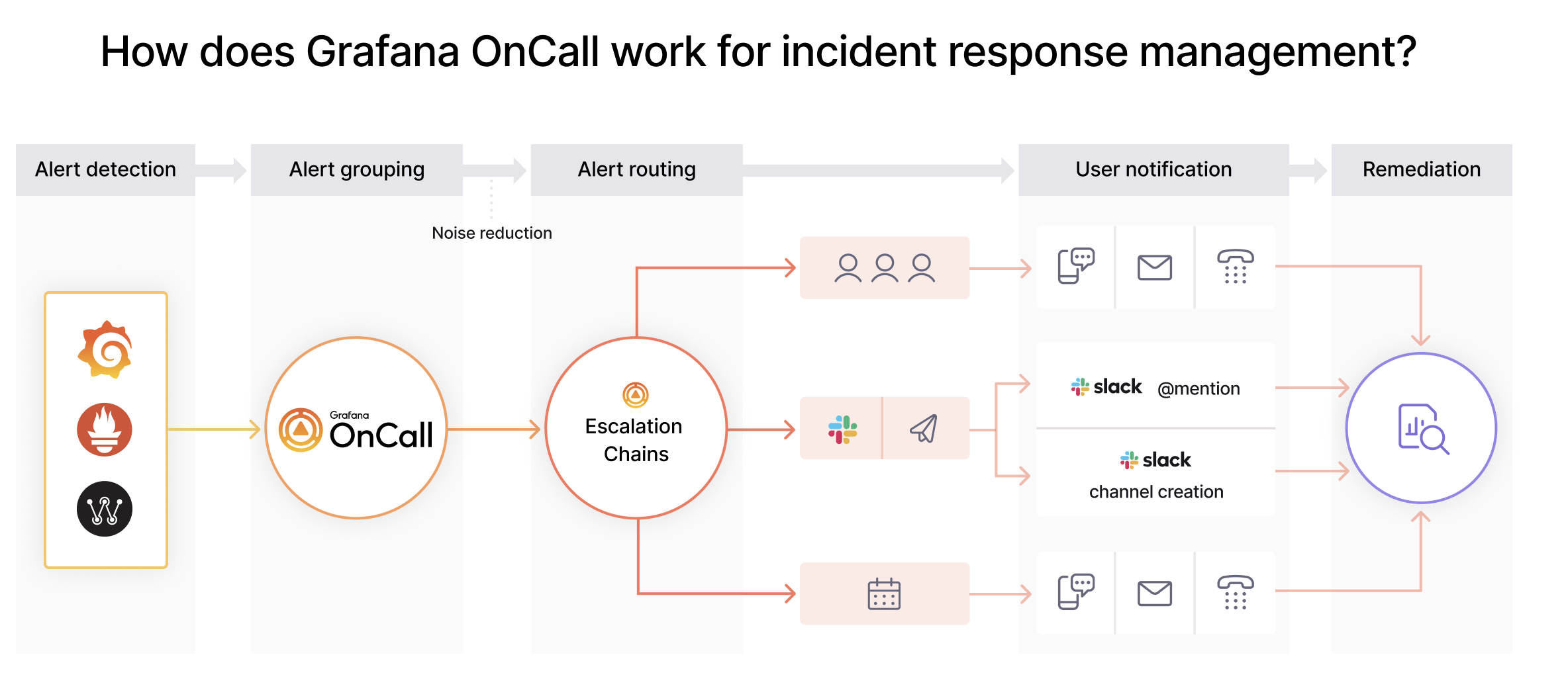 The following diagram details an example alert workflow with Grafana OnCall: