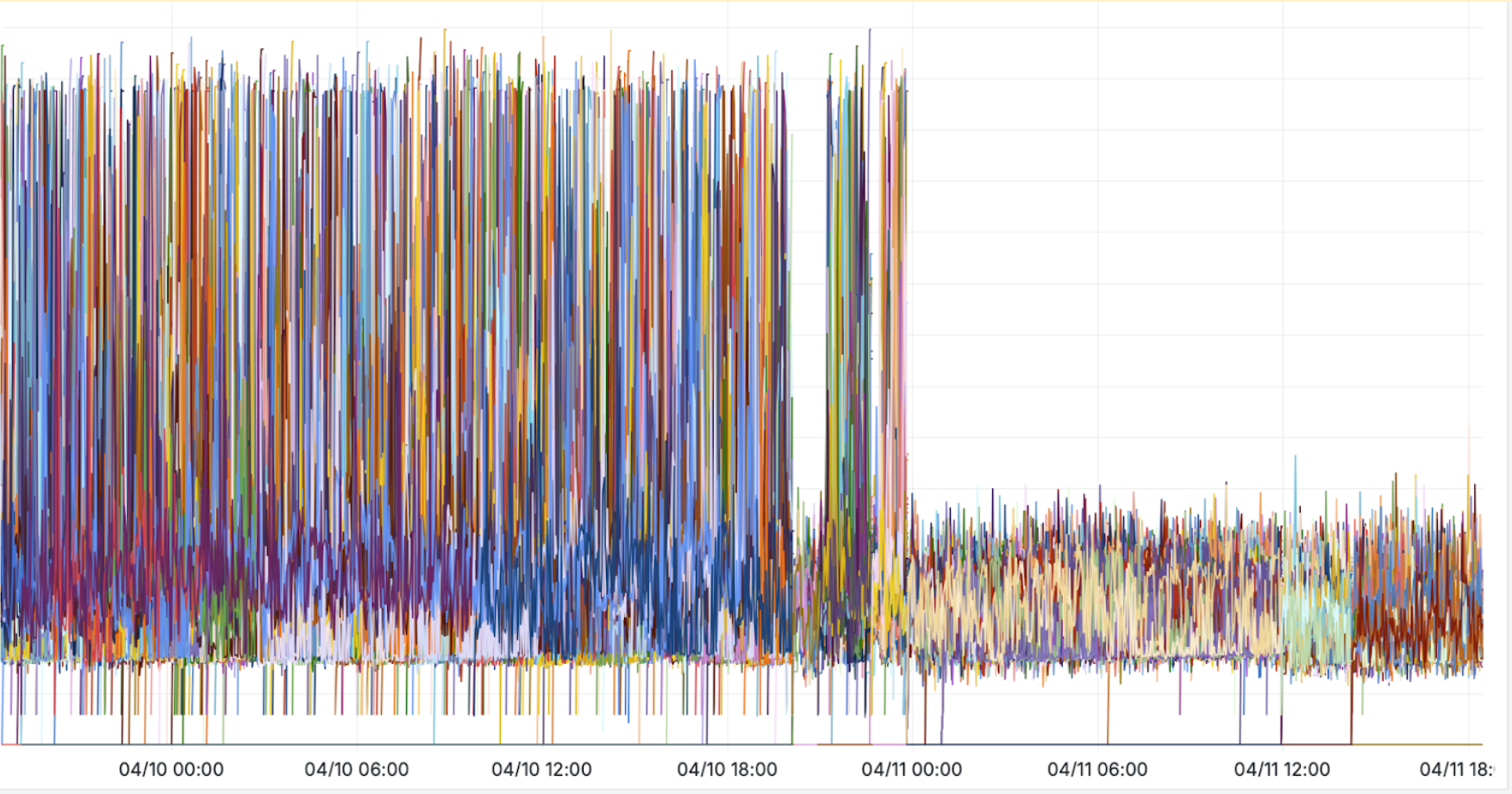 This graph illustrate the amount of memory used by the compactors. In one cell, we saw major improvements in compactor memory usage after PR 4985 was merged. Refer to PR 4985 for more information, including benchmarks and test results.